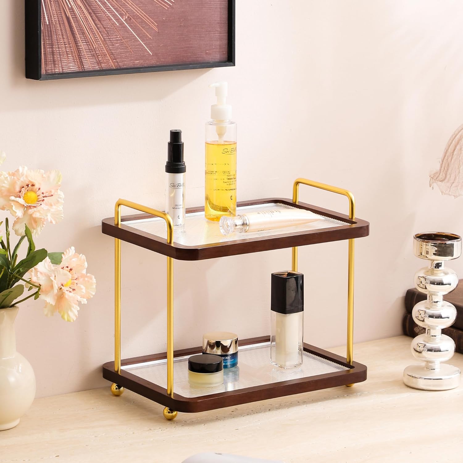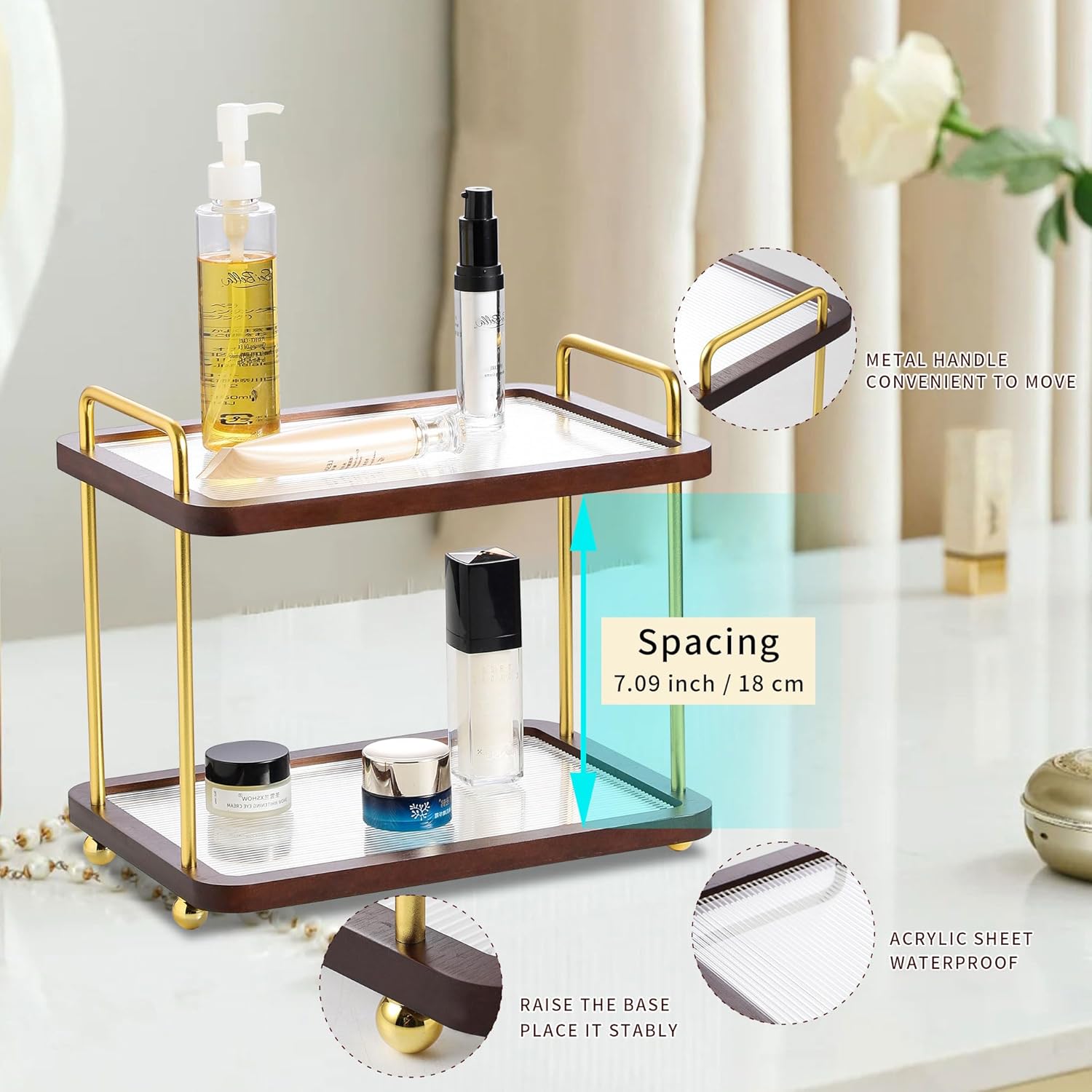 | Set Name | Leijosya 2-Tier Rolling Vanity Organizer - Golden |