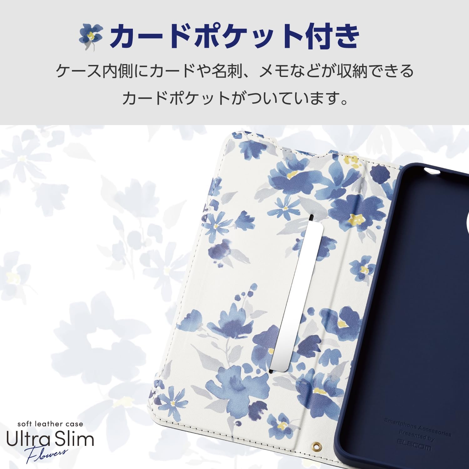 Specifications: ■Compatible model: AQUOS wish4(SH-52E) ■Set Contents: Case x 1 ■Material: Case body: synthetic leather, TPU (thermoplastic polyurethane), magnet ■Color: Navy 【Description】 ■ Ultra slim type soft leather case (notebook type) is a thin and ultra lightweight ultra slim type that does not affect the thinness or lightness of your device. ■ It has a side opening flap that covers the screen when not in use. Comes with an opening so you can make calls with the flap closed. ■ There is 1 card pocket on the inside of the flap to store notes and cards. You can use the IC card as it is without having to remove the card. ■ Please open the flap before using. ■ An adorable flower print is applied on the inside of the case. ■ Adopts a magnetic flap that can secure the flap firmly while being slim. ■ The attached part of the device is made of TPU material that absorbs shock and protects the device from impact. ■ Air cushion is installed in four corners where the biggest impact is expected when dropped, effectively absorbs shocks. ■ The back can be folded to use as a stand and enjoy watching videos comfortably. ■The case covers all the way around the various connectors and buttons, so you can use it without worry. ■ Comes with a strap hole for attaching the strap. ■ This product does not come with a strap. ■ You can connect various cables and take photos and operate buttons while the case is attached. ■ This product meets more than one of our own environmental certification standards and displays the "THINK ECOLOGY" mark. ■ We work hard to reduce waste and make this product paperless with the instruction manual included with the product. Product inquiries Elecom General Information Center TEL. 0570-084-465 FAX. 0570-050-012 Reception Time / 10:00 - 19:00 24/7