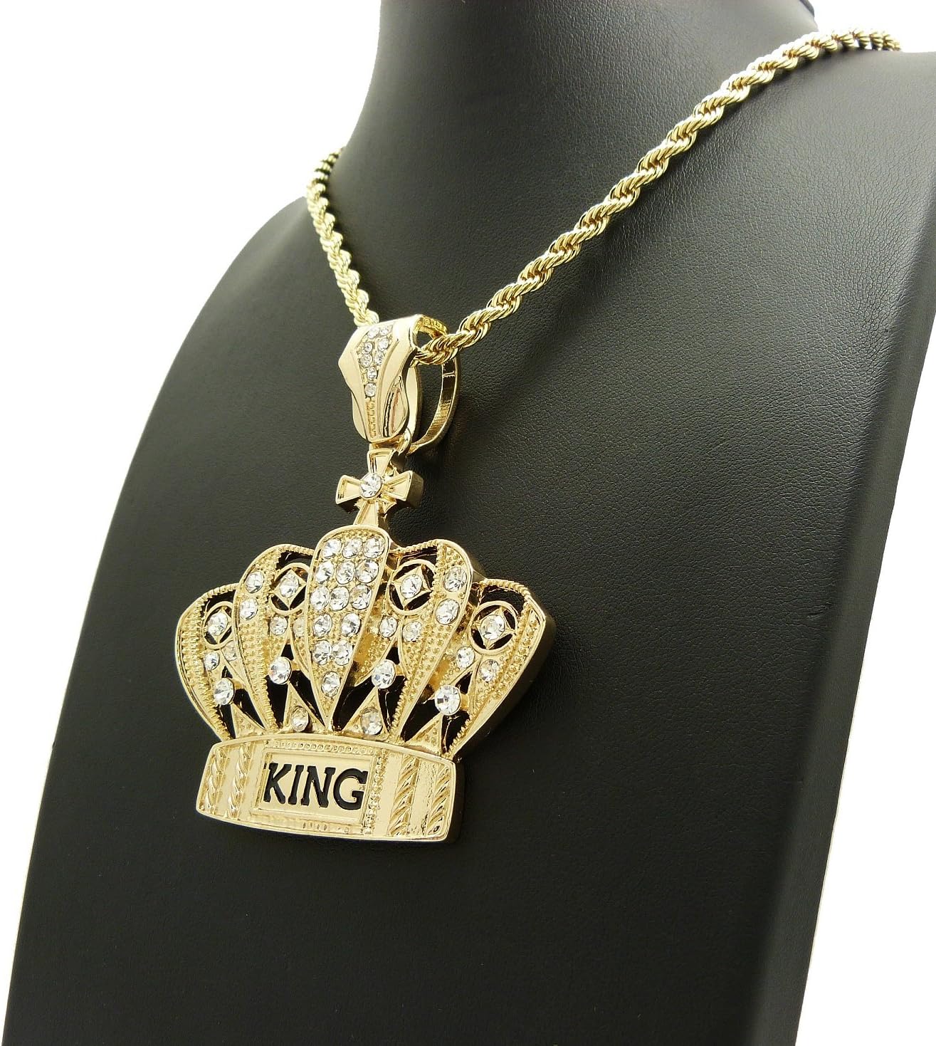 Hip Hop King Crown Pendant 24", 36" Various Chain Necklace in Gold, Silver Tone