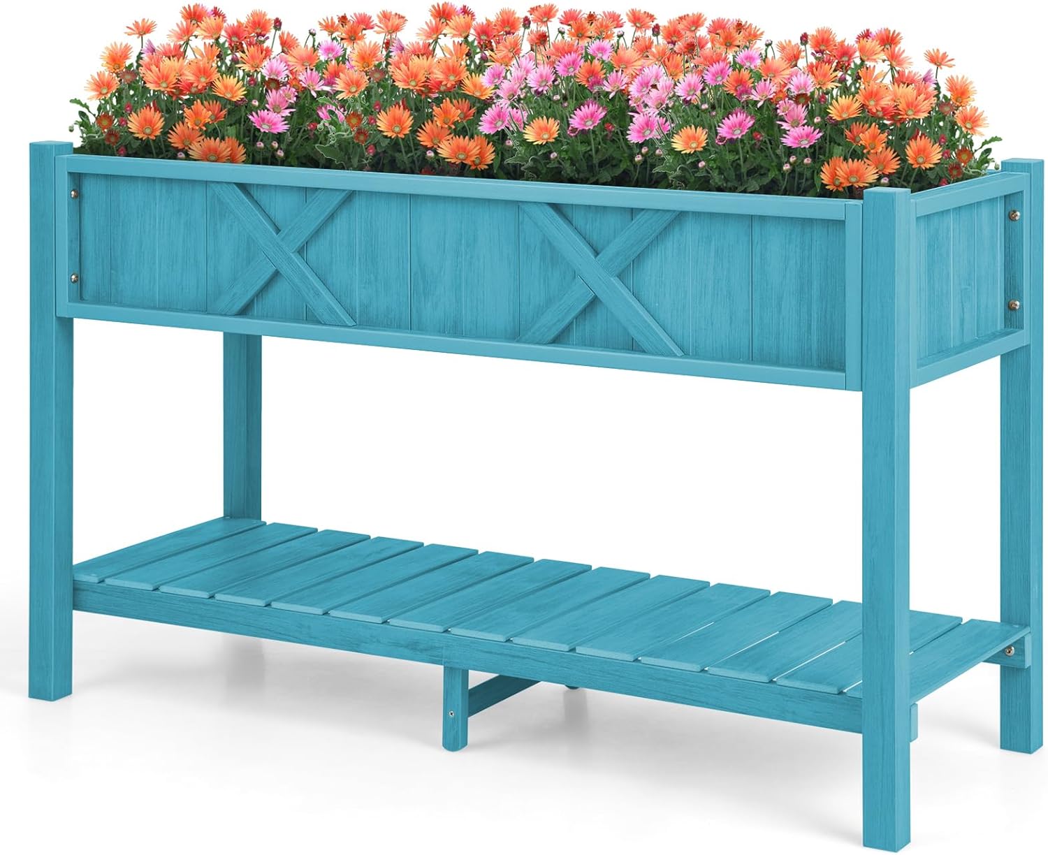Description: Create a Flourishing Garden and Keep Your Lovely Plants Thriving! Our Giantex HIPS raised garden bed measures 44" x 18" x 29" (L x W x H) and comes with a large planter box for various plants to thrive, such as flowers, herbs, vegetables, fruits, etc. And there exists a bottom storage shelf, allowing you to conveniently store your gardening tools, watering pots, and flowerpots, keeping items within reach. Besides, in contrast to normal wooden raised garden beds, our premium HIPS raised garden bed could withstand various weather conditions and ensure that it will not fade, rot, or crack, guaranteeing a lifespan of 5-10 years. And thanks to the reinforced bottom crossbars and an additional supporting leg, this elevated planter box also ensures better stability when filled with soil and plants. Other than that, it comes with drainage holes, ensuring proper water management and preventing water-logging that can harm your precious plants. And the elevated design provides protection for your plants against small animals, while also offering convenient access for watering. Features: Crafted of 100% HIPS material, not easy to fade, crack, or rot, ensuring longevity The premium HIPS raised garden bed ensures a lifespan of 5-10 years The bottom crossbars ensure that the structure remains strong and stable The additional supporting leg ensures the frame is not easy to warp or bend Features rich and textured grains and decorated with elegant X-shaped bars The bottom drainage holes ensure good water drainage and well ventilation The elevated design with ergonomic heights can prevent painful kneeling or bending Suitable for cultivating various plants, such as flowers, herbs, vegetables, fruits, etc The ventilated slatted shelf provides a practical solution for gardening accessories Specifications: Color: Coffee Material: HIPS Overall Dimensions: 44" x 18" x 29" (L x W x H) Interior Size of the Planter Box: 44" x 15" x 7" (L x W x H) Size of the Bottom Shelf: 44" x 14.5" x 6.5" (L x W x H) Weight Capacity of the Planter Box: 110 lbs Weight Capacity of the Bottom Shelf: 66 lbs Net Weight: 40 lbs Package Includes: 1 x HIPS Raised Garden Bed 1 x User’s Manual
