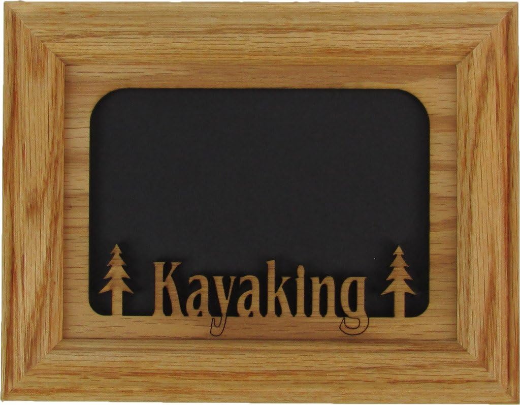 Looking for the perfect kayaking gift? This 5x7 Kayaking Picture frame holds either a 4x6 photo that you can tape directly onto the wood mat or a cropped 5x7 photo that you can just set inside the frame; no tape necessary. This handmade 5x7 oak wood frame comes with an easel back,Kayaking Matte and glass. Perfect gift for any Holiday or special occasion! Please feel free to Email us with any questions you may have.