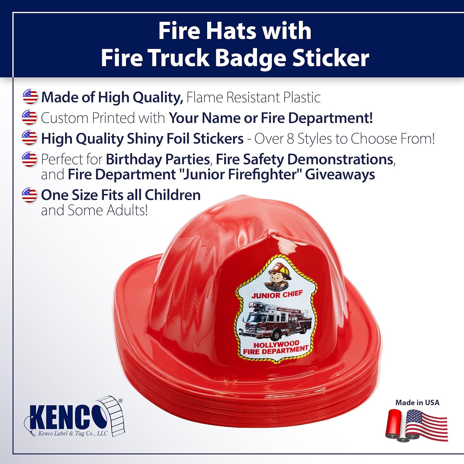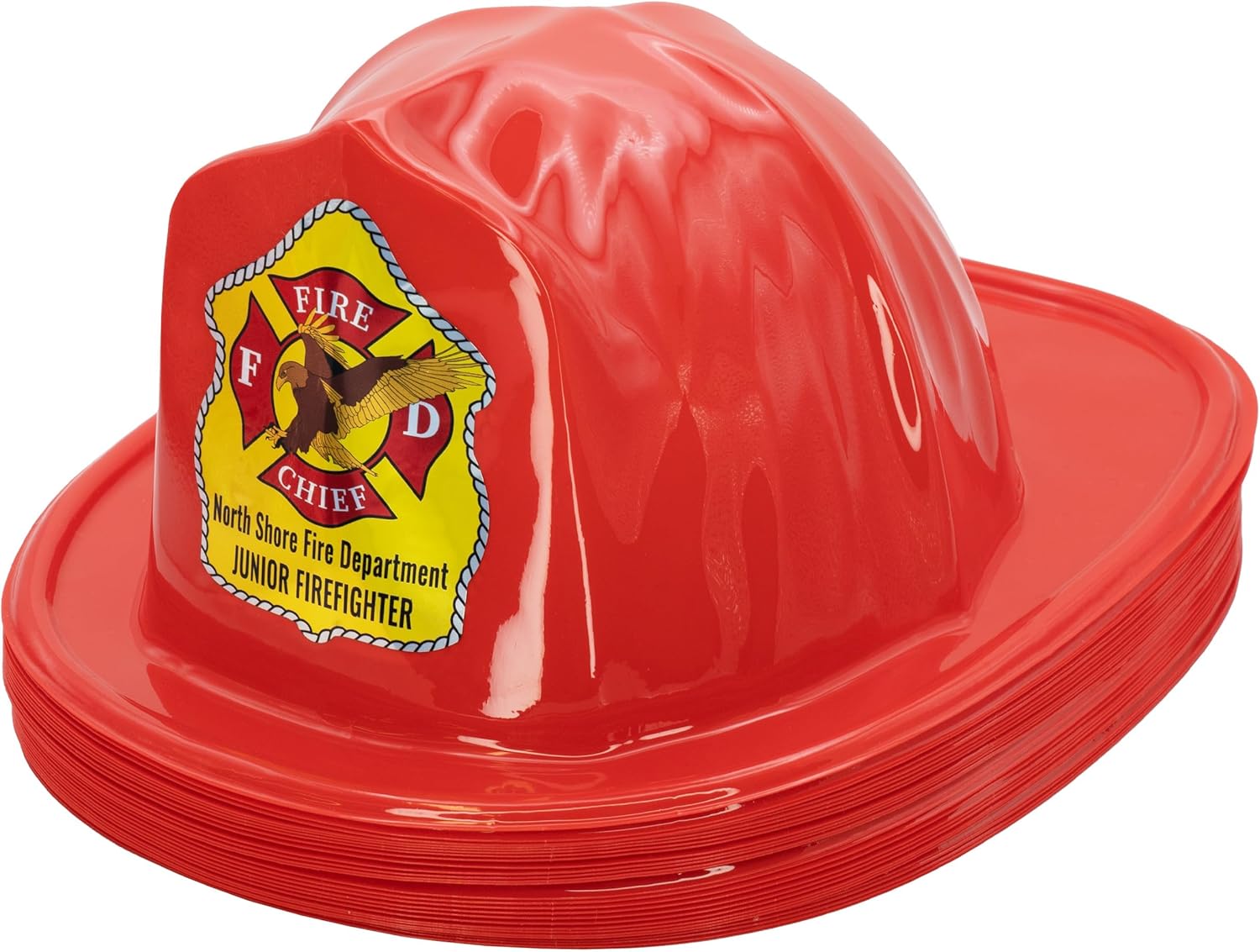 These fire fighter hats are a fun way to teach kids about fire safety and fire departments. The plastic fire fighter hats are red with a reflective fire fighter sticker and are perfect for fire department events, safety fairs, birthday parties, and more. These will make fire safety fun for kids. Kids will love pretending to be a fire fighter with these fun fire fighter hats. These fire fighter hats are also a great value. Sold in quantities of 25 all the way through bulk quantities, these fire fighter hats are an affordable party favor or classroom activity. Larger fire departments can also purchase these fire fighter hats in bulk quantities - red color