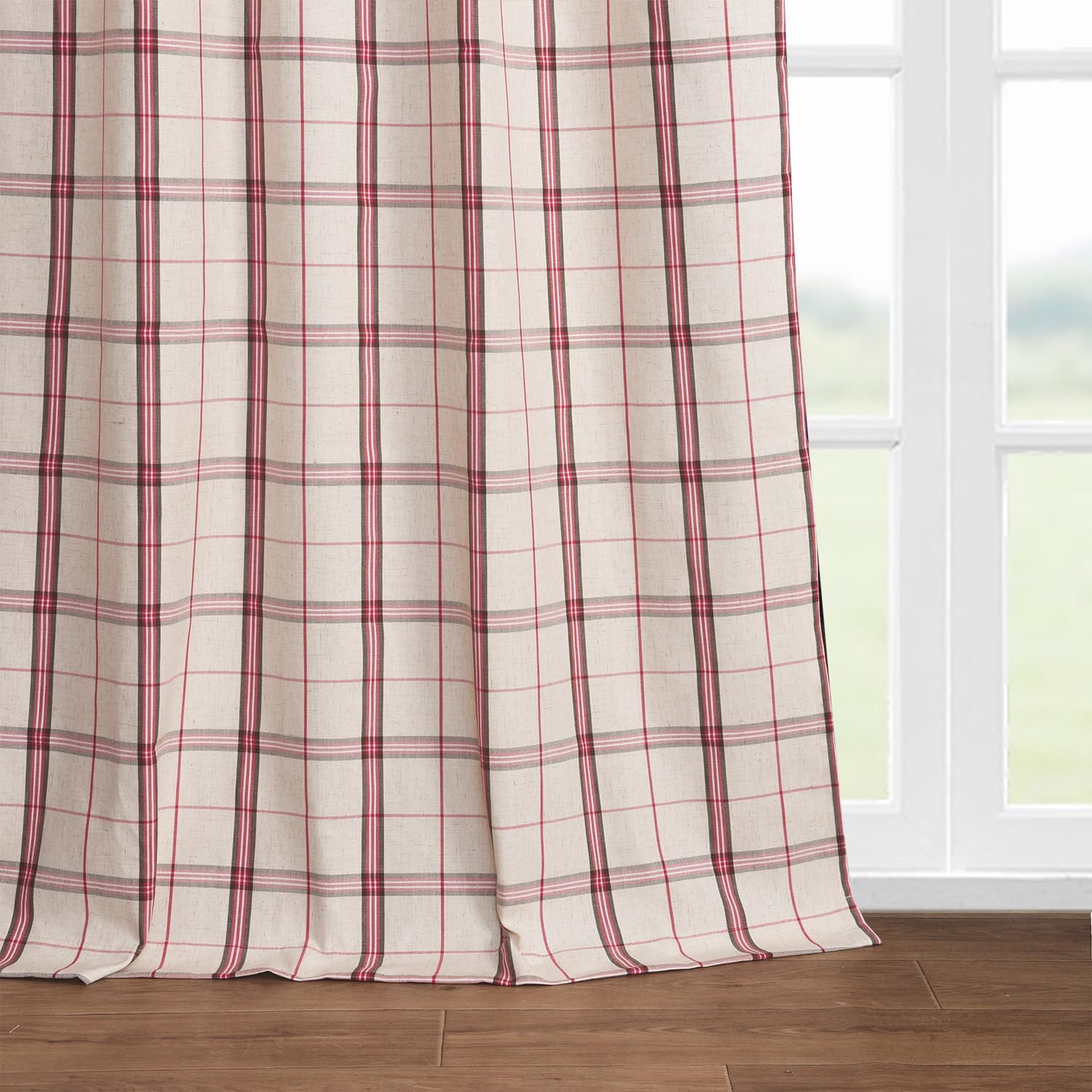 Go romantically classic by dressing all your windows with this buffalo check curtains. In an opaque construction that efficiently blocks sunlight for keeping your space nice + cool! Finished with pocket top for hanging easily from any of our curtain rods (sold separately). Comes with 2 panels. Various lengths, all sizes 52"w, 100% polyester. Pole pocket diameter: 4.25". Blocks 60%-70% light. Machine wash cold, tumble dry low or dry clean.