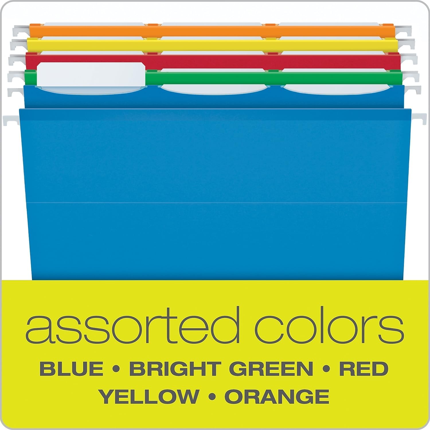 Product Description Pendaflex Ready-Tab Reinforced Hanging Folders feature 3 built-in tabs. Simply lift, label and file. Folders are lighter in color on the inside to prevent misfiling. Reinforced top and bottom edges make these time savers extra durable. Includes a printer-ready sheet of adhesive labels. Letter size, assorted colors: blue, red, green, orange, yellow. 25 Per box. From the Manufacturer Pendaflex Ready-Tab Reinforced Hanging File Folders features Lift Tab technology that makes it easier than ever to tab hanging folders so your filing system is more efficient. Easily change tab position with clear tabs that are built into the folder. Tabs easily lift up and down. Write directly on tabs or use included sticker label sheet. Folders feature polylaminate strips on top and bottom edges for superior durability.