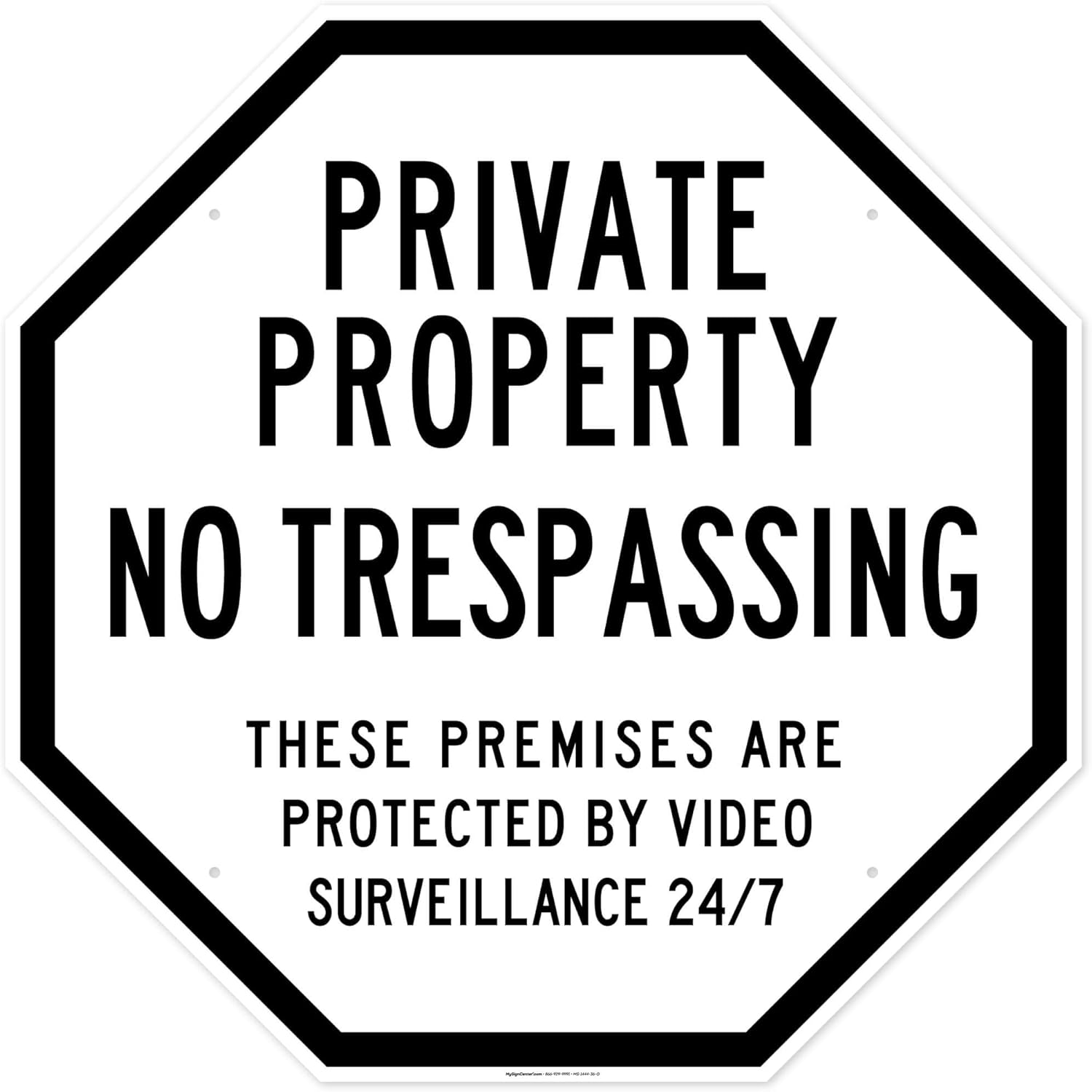 Private Property No Trespassing These Premises Are Protected By Video Surveillance 24/7 Sign, (MS-1444) 18x18 Inches, Rust Free .063 Aluminum, Fade Resistant, Made in USA by My Sign Center