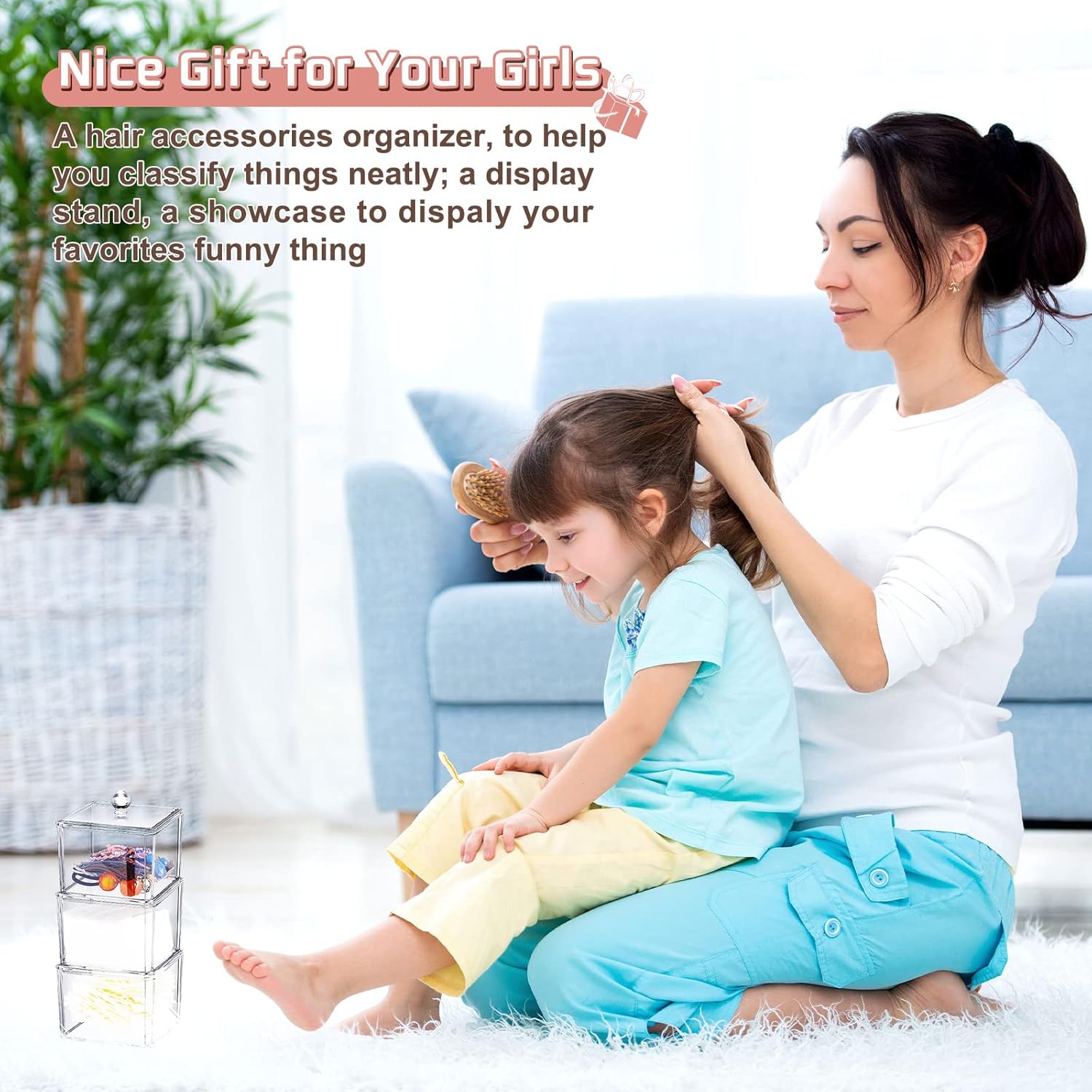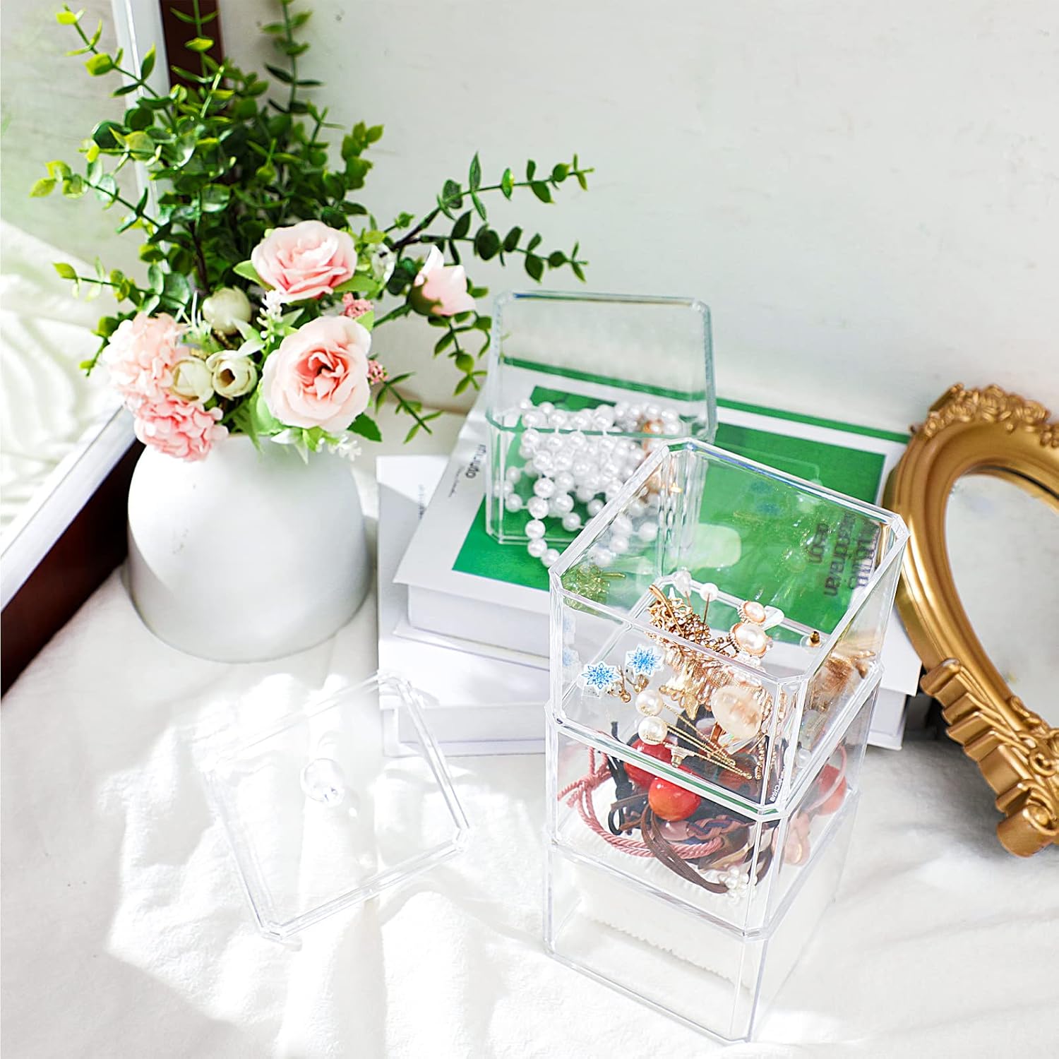 Features: Easy to care for: When the hair tie holder organizer gets dirty, you can be clean it with soft cloth in some soapy water, remember to absorb the residual water with a dry and soft cloth before putting your hair ties inside. Simple and modern style: The hair accessories organizer for girls are in a simple and modern style, which allows them to widely match well with your different room decoration styles, saving your time and efforts in picking and matching. Specifications: Material: acrylicColor: transparentSize: about 9.5 cm/ 3.74 inches long, 9.5 cm/ 3.74 inches wide, about 23 cm/ 9.06 inches highPackage includes: 3 x The 3 stackable hair accessories organizer with lidNotes: Manual measurement, please allow slight errors on size. The color may exist a slight difference due to different screen displays.