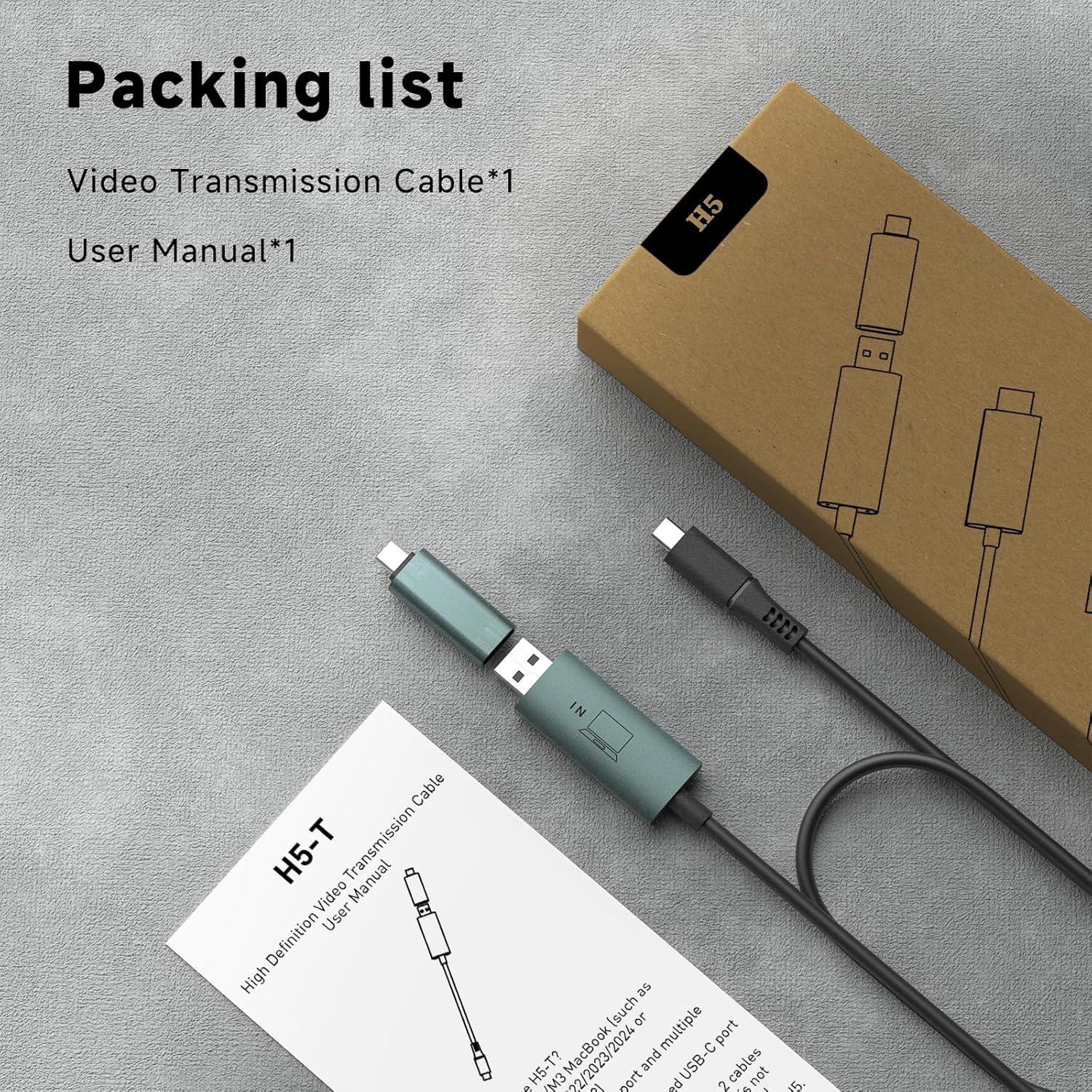 This H5 cable is a cable which transfers USB A or USB C port into Video Signal Output. This enables you to watch high-definition videos or slideshows on large screens such as HDTVs, projectors, portable screens, and other devices.