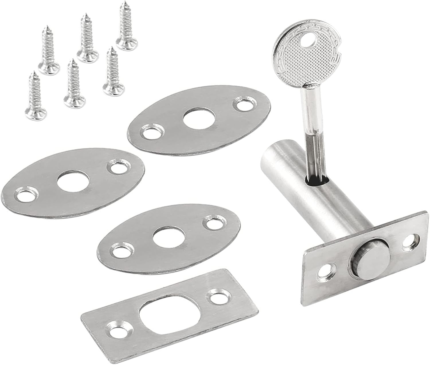 Feature:Hard and SturdyThe door lock is made of 201 stainless steel, has better wear-resistance performance, long-lasting and long service life. This stainless steel tube well lock manager lock can hide the fireproof door frame door hidden key lock mortise lock crossRust and Corrosion ResistanceThe surface of this tubewell key mortise lock is brushed, with good anti-rust and corrosion resistance, can be used for a long time in wet or corrosive environments and will not easily rust or corrosionComplete AccessoriesThis hardware with key and screws has various accessories including 1 door lock, 1 key and several installation parts, which is convenient for you to installSimple InstallationThe installation of this stainless steel hidden manager is very easy. Making it easy to install with just a screwdriver, Remove the lock core first, then install it with the aiming hole, and tighten it with the attached screwsWide ApplicationThis tubewell key mortise lock can be widely used in fire doors, framed doors, invisible doors and so on, which is solid and practical. And it also can use in hotels, homes, factories and other scenesSpecification:Material: 201 Stainless SteelSurface Treatment: BrushedSize: As ShownNote: Please allow for manual measurement error.Package Included:5 * Tubewell Key Mortise Lock Kit