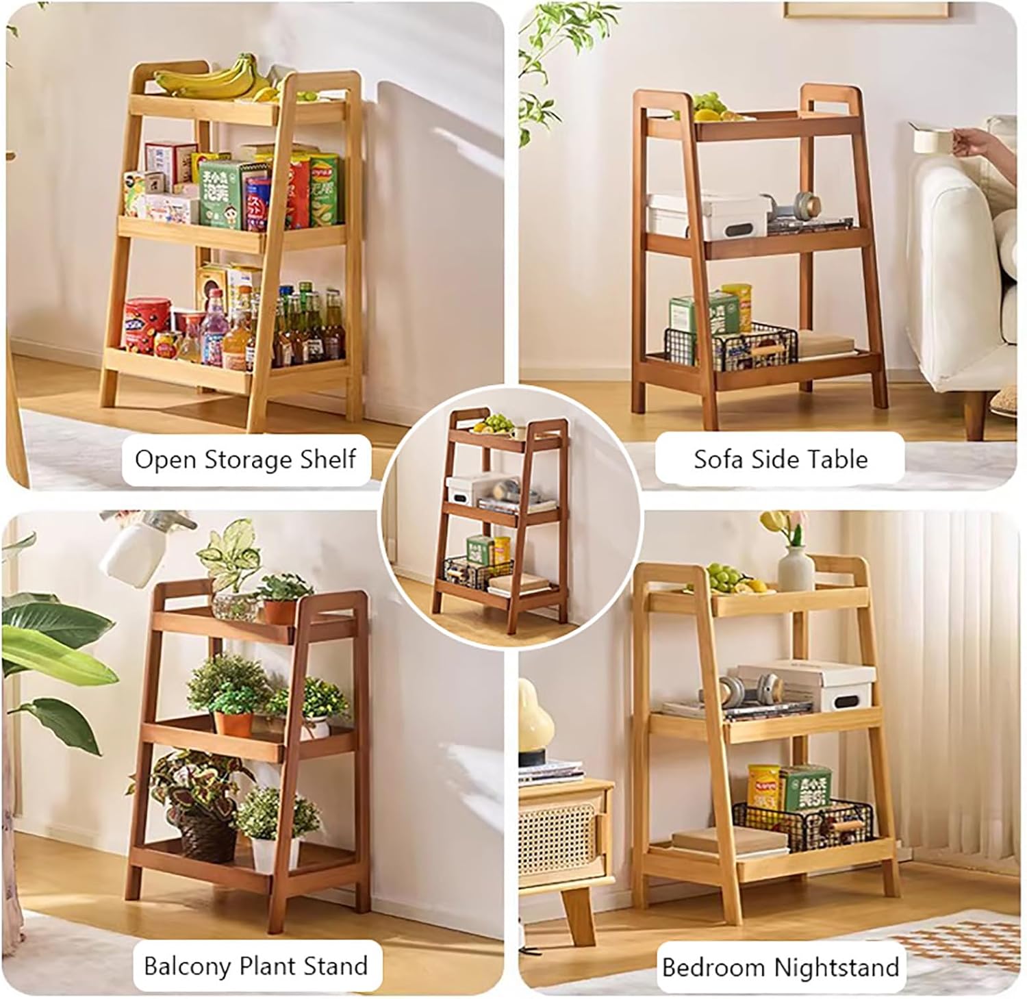 3-Tiers Ladder Shelves, Wood Ladder Bookshelf with Storage, Small Bookshelf, Small Side End Table for Living Room, Kitchen, Bathroom Specifications:Material: Solid woodDimensions: 19.6“W x 12.4”D x 35.2“H, 19.6”W x 12.4“D x 45.2”HPackage includes:1*Solid Oak Wood 3-tiers Ladder Shelf
